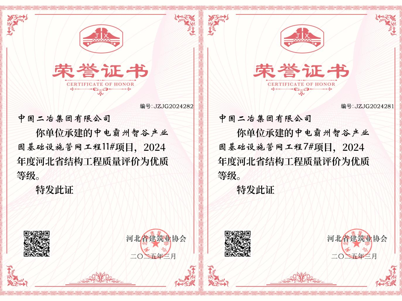 中國二冶一項目獲評2024年度河北省優(yōu)質(zhì)結(jié)構(gòu)工程